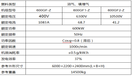 600GF-Z型沼氣發(fā)電機組